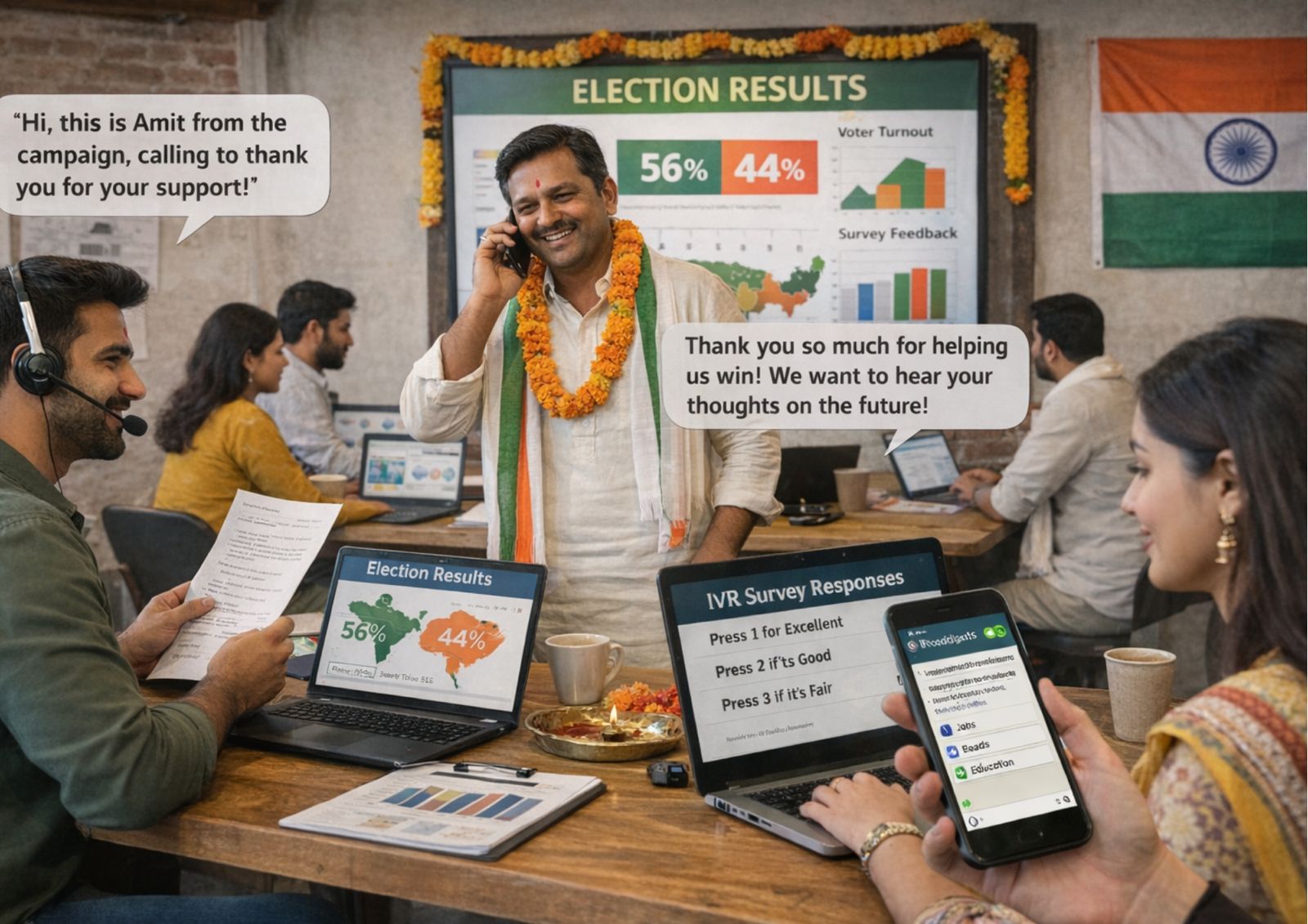 हाँ, आपको कॉल रिसीव दर, प्रतिक्रिया प्रतिशत, सर्वे परिणाम और अन्य विस्तृत विश्लेषण की रियल-टाइम रिपोर्ट मिलती है।